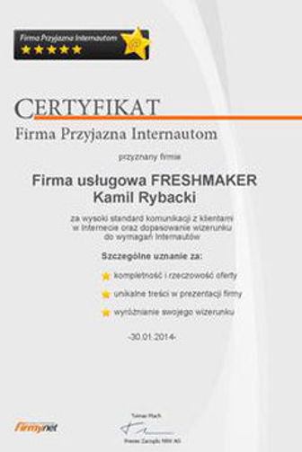 Firma Fresh-Maker za realizację swoich usług przez okres 12-lat, otrzymała od swoich Klientów wiele pozytywnych opinii i listów referencyjnych, którzy do nas wracają i korzystają z katalogu usług. To świadectwo na to, że zawsze można na nas liczyć i nam zaufać.